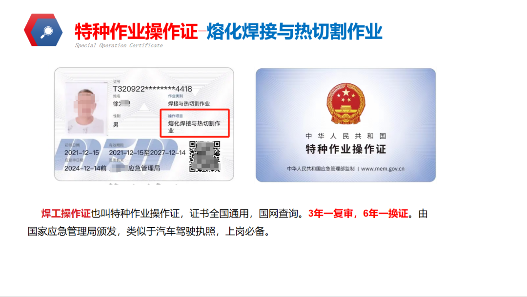 特種作業(yè)焊工證由應急管理部統(tǒng)一頒發(fā),屬于《特種作業(yè)目錄》中的 “焊接與熱切割作業(yè)” 類別,覆蓋熔化焊、壓力焊、釬焊等核心作業(yè)。根據《安全生產法》,未持證上崗將面臨2-10 萬元罰款,情節(jié)嚴重者追究刑事責任。該證書與特種設備焊接證(如鍋爐壓力容器焊工證)形成互補,共同構建焊接安全防線。